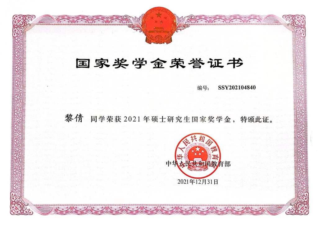 31/12/2021: Congratulations!!! Li Qian won the National Scholarship